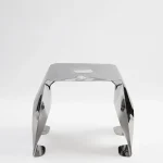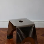 The A STOOL by London-based designer Jaclyn Pappalardo is a fascinating exploration of hydroforming. In this process, two sheets of metal are welded together and then inflated using pressurized air or water. The design emerged from a series of inflated tests, aiming to preserve the organic nature of both the process and aesthetic. It accentuates round curves in areas of highest volumetric expansion. The stool features a simple right-angle shape with ‘a’ shaped legs and a hole handle, contributing to its playful design.