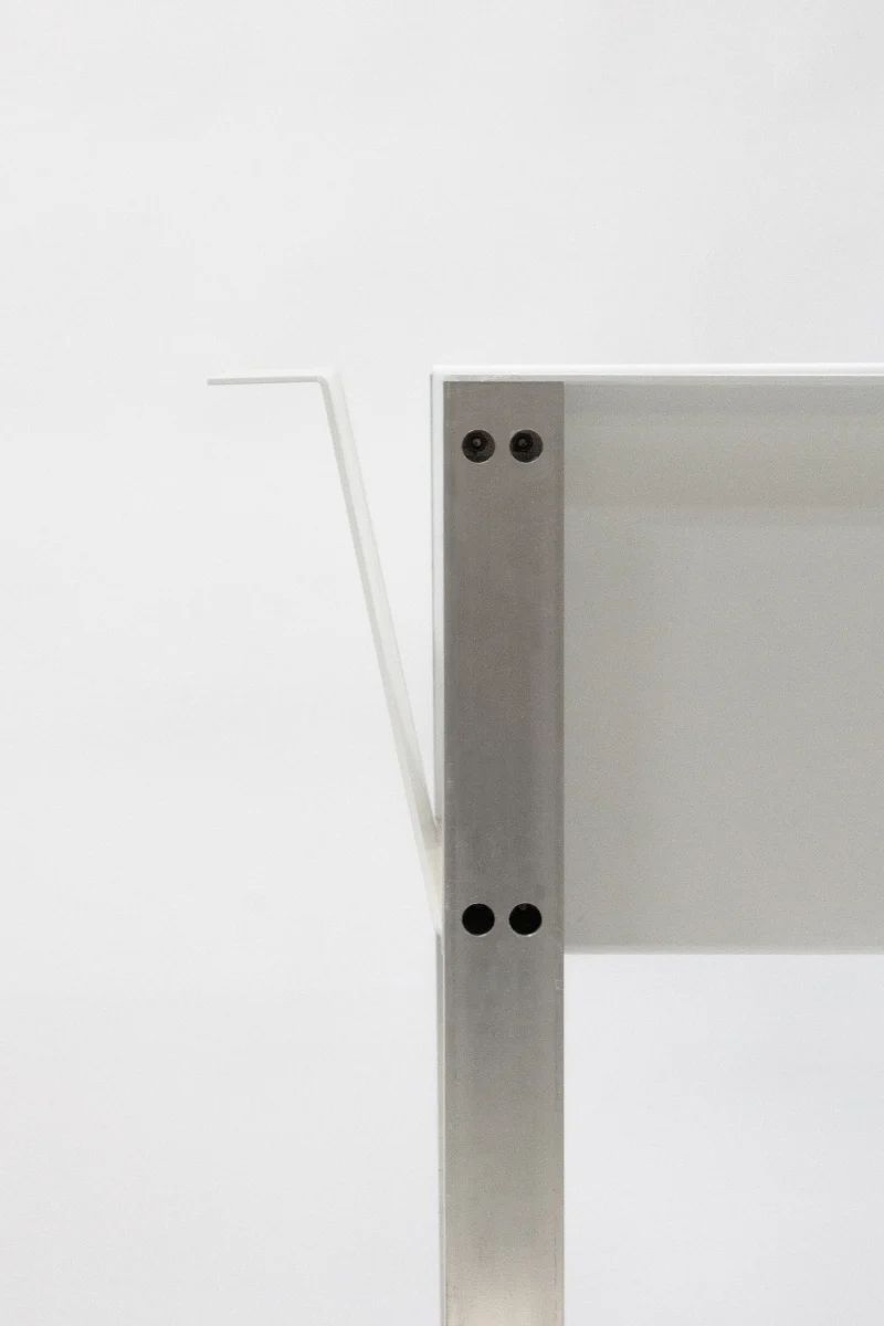 A2 is the sixth series developed by the studio, continuing its exploration of form and materiality. The furniture pieces stem from simple formal operations, leveraging the possibilities of each material. In the A2 series, the folding of the aluminum sheet was the initial operation that defined the seat and its interface with the body, while the aluminum profiles contrast with the lightness of the surface, adding rigidity and channeling the weight directly to the ground.