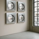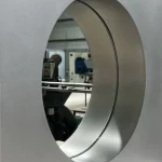 The Abbas wall mirror by Joana Teixeira is made in aluminium through the hands of different people and companies. A kind of temporary community formed around a shared goal. That collective involvement is essential in all my work, I want people to feel part of something more than just a product. The concept behind Abbas, with its depth and layered structure, reflects a need for awareness and assimilation. In fast-paced times, my work is increasingly influenced by the idea of slowing down, being present, and fostering genuine connection. While studying the space between the “before and after” of a mirror’s reflection, that cognitive moment of recognition, memory, and identity, I was reminded of Kiarostami’s 24 Frames, which explores what happens before and after a still image. That idea of a shifting present is what shaped Abbas, with its 8 cm depth representing mental processing, a frame calling us into presence and awareness. Like a new dimension.