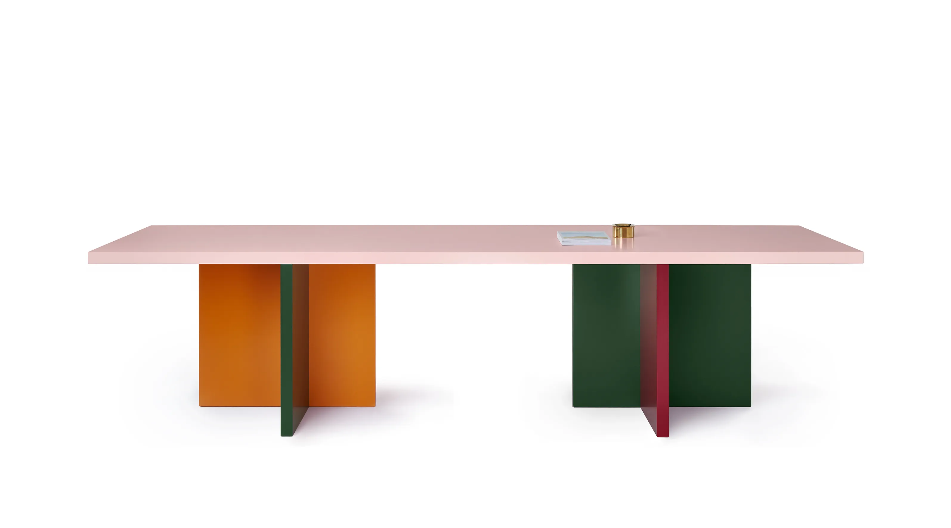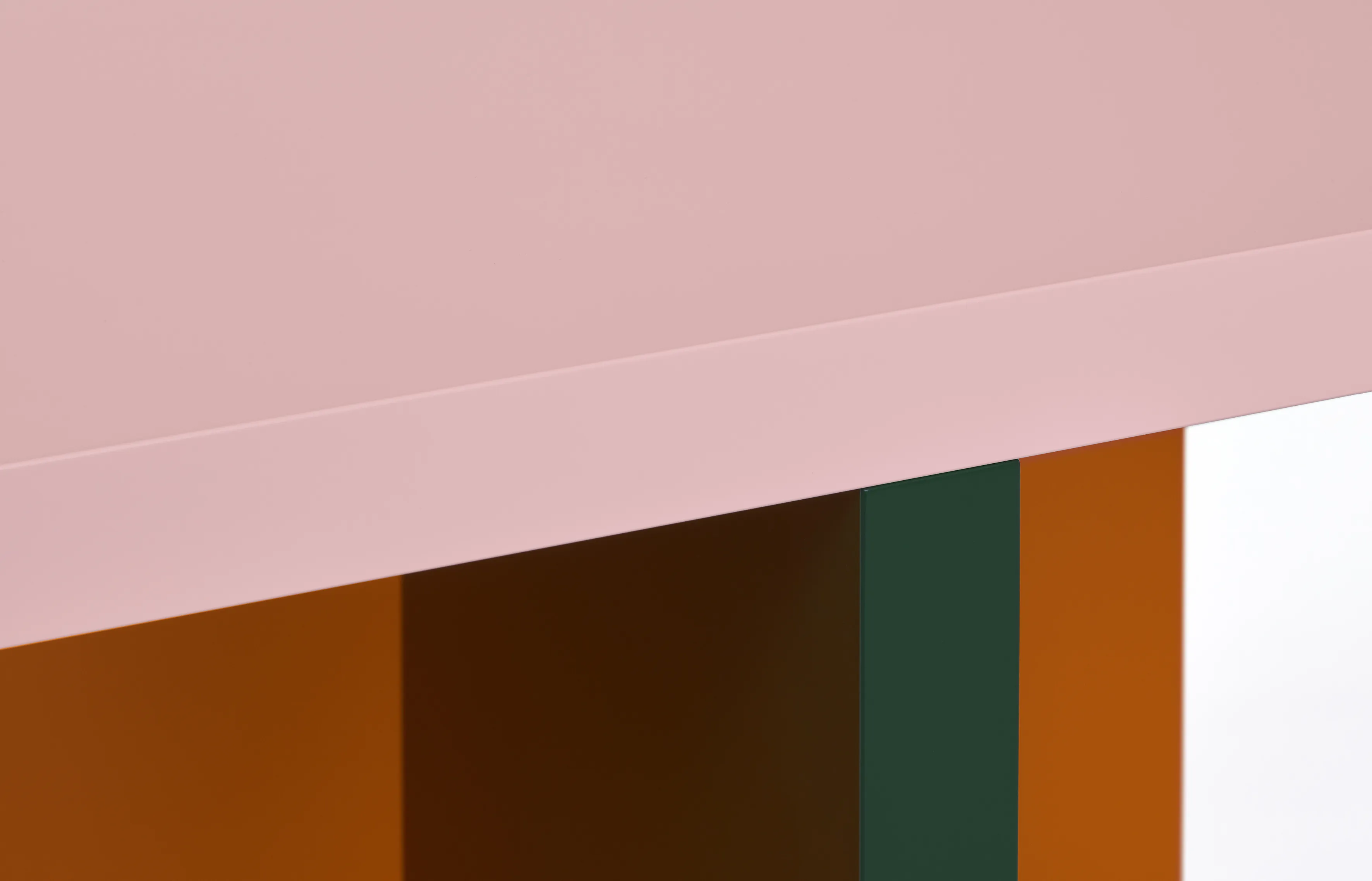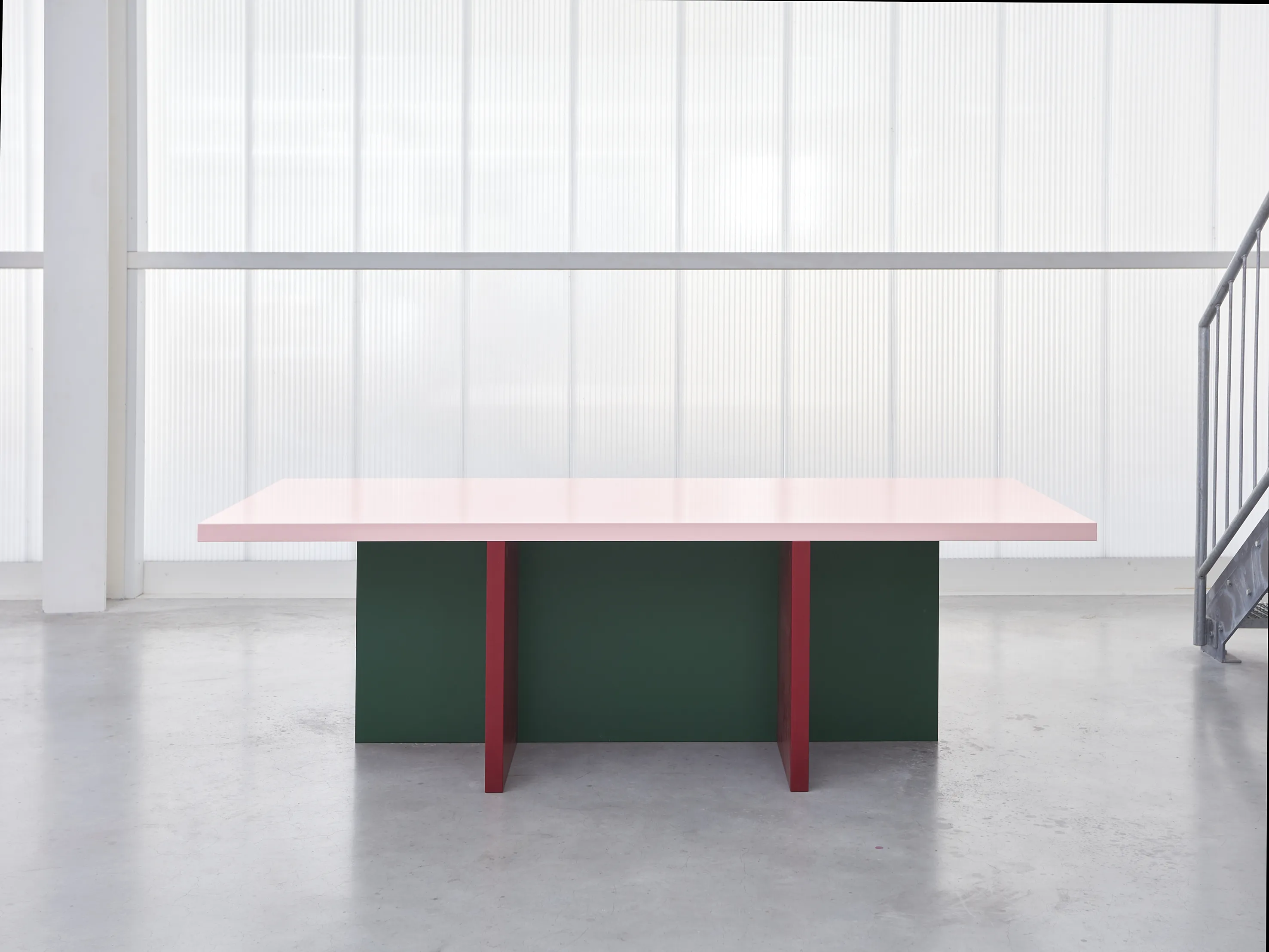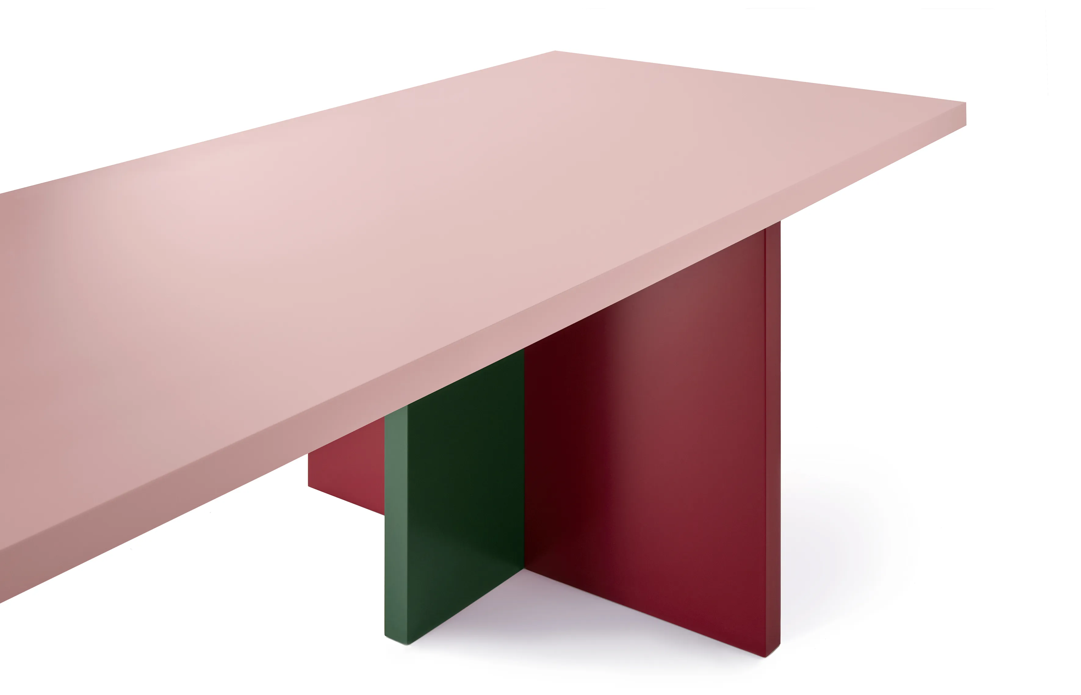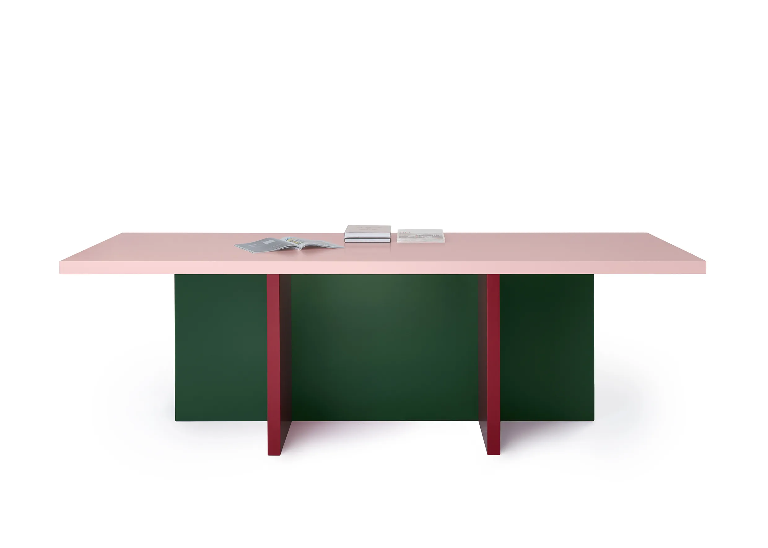 ABBONDIO is a modern dining and conference table, designed by Moritz Bannach in 2018. Abbondio features a strong sculptural character, further underlined by the combination of a purist design with a selection of expressive colors. Abbondio has been awarded with the German Design Award and the Iconic Award 2019. In addition to the suggested colors and combinations, colors can be freely selected and combined. Abbondio is available in lengths of 320 cm and 250 cm. Custom lengths are available on request.