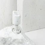 It is an elegant addition to a space with it’s raw body, bright white shade and a candle lit to warm up the close surrounding.