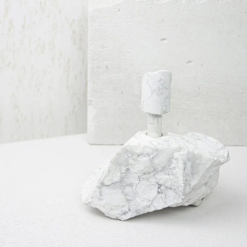 This candle-holder is made of a natural Howlite stone. It’s bright white appears vivid due to the delicate greyish veins which are ‘drawn’ by ‘mama-nature’ meticulously.