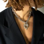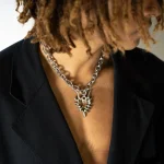 Each necklace is meticulously handcrafted using the ancient lost wax technique, a process that captures every organic imperfection, making each piece one of a kind. Sculpted with intention and cast in alpaca, it carries a rugged yet timeless presence, exuding resilience and character. The thick stainless steel chain adds to its durability, ensuring it stands the test of time.