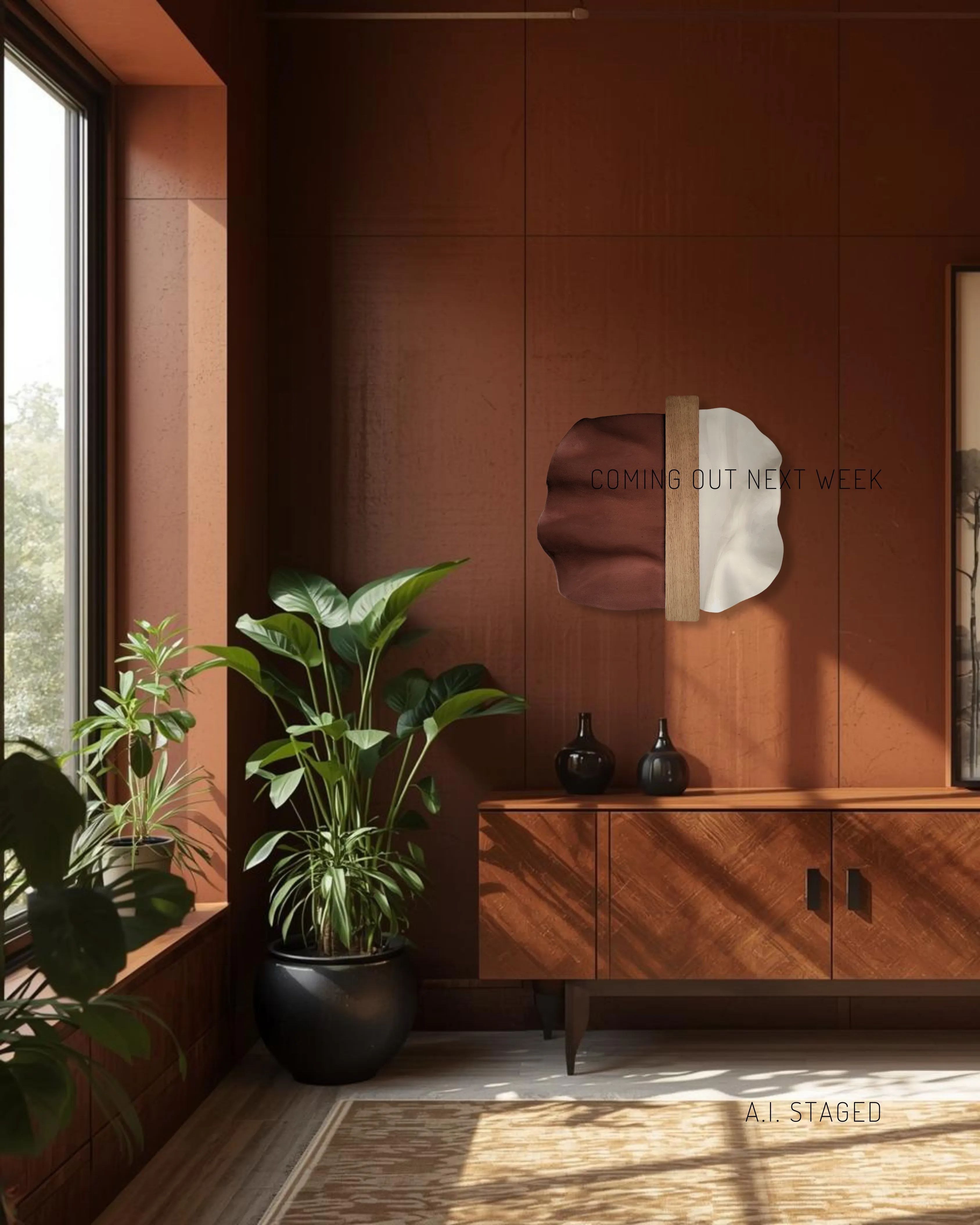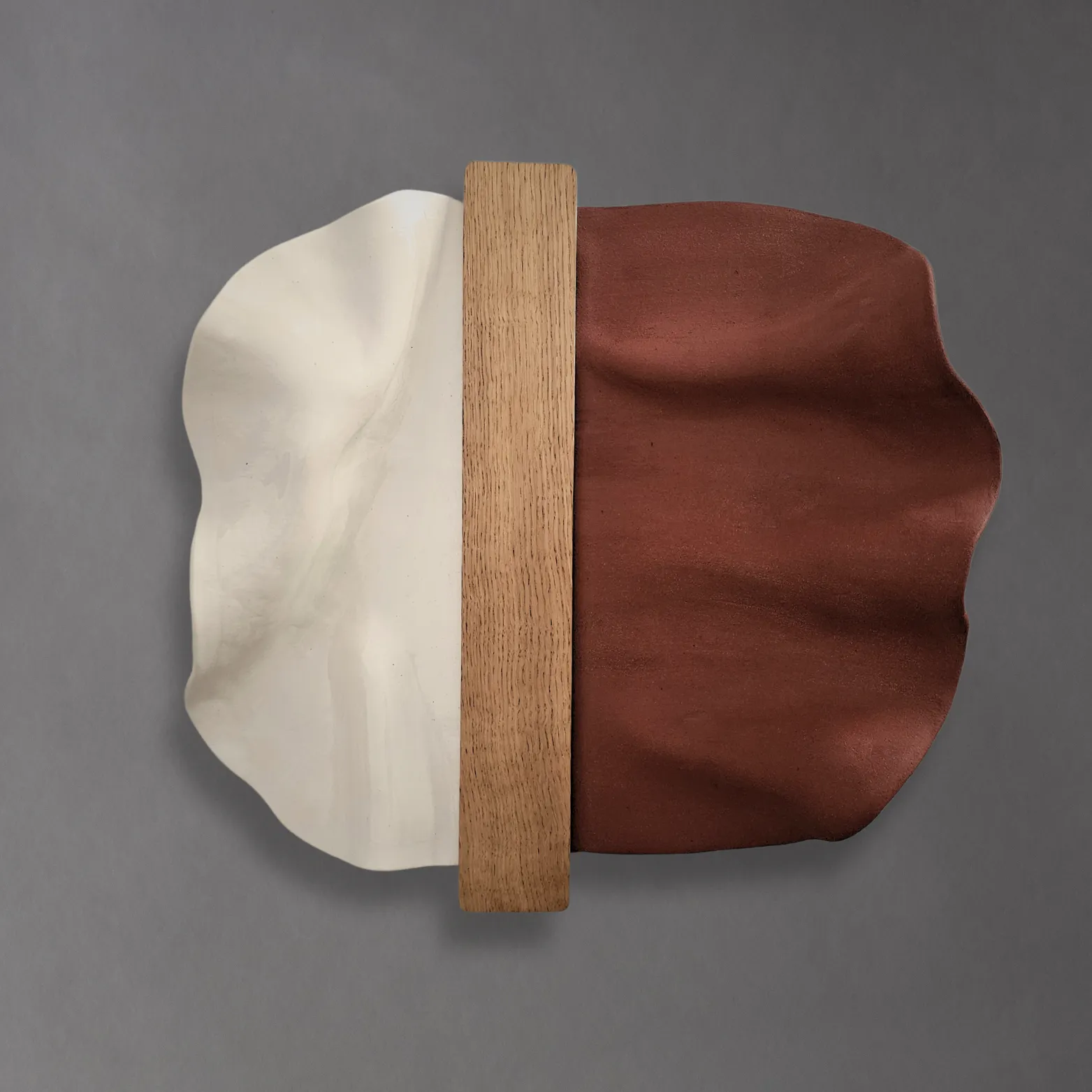 Abundance is a collection of handcrafted ceramic and wood wall sculptures, by Studio Ēeme, originally commissioned for a private residence in France. Each piece embodies a dynamic sense of movement, exploring the interplay of light and shadow through the combination of wood and ceramics.