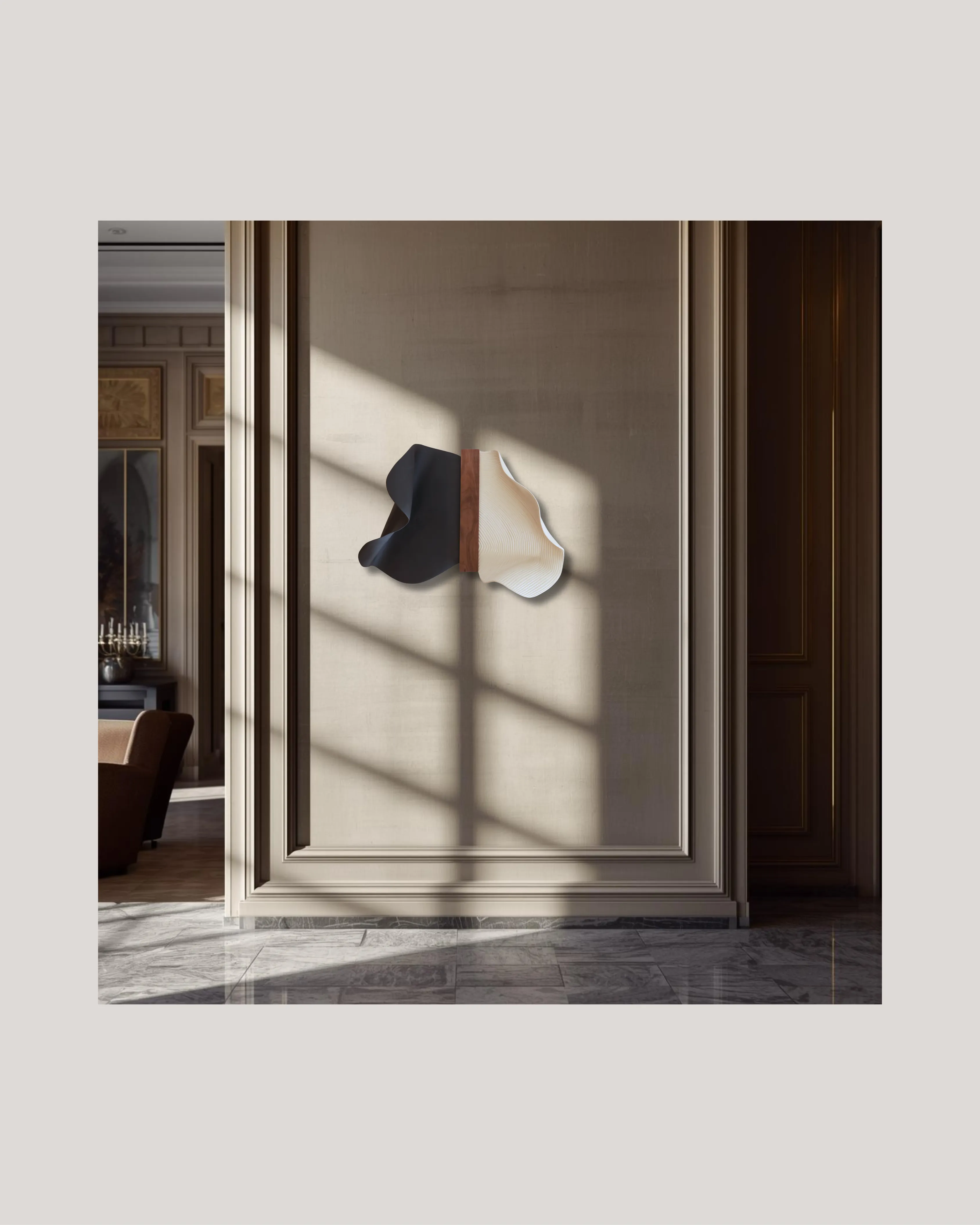 This piece is part of a series in Walnut Wood, White and Black Stoneware originally commissioned by Six Senses Douro Valley.