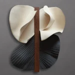 Abundance is a collection of handcrafted ceramic and wood wall sculptures, by Studio Ēeme, originally commissioned for a private residence in France. Each piece embodies a dynamic sense of movement, exploring the interplay of light and shadow through the combination of wood and ceramics.