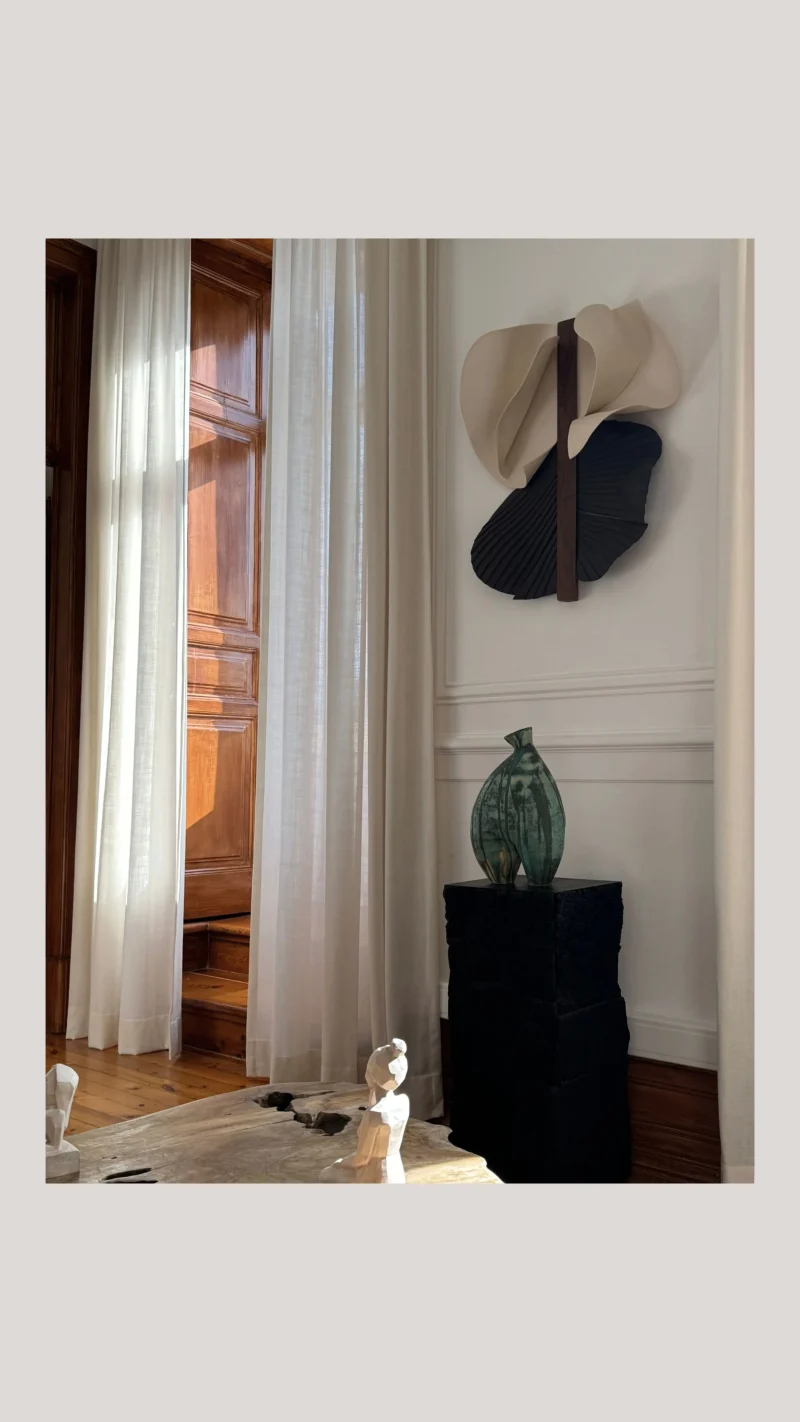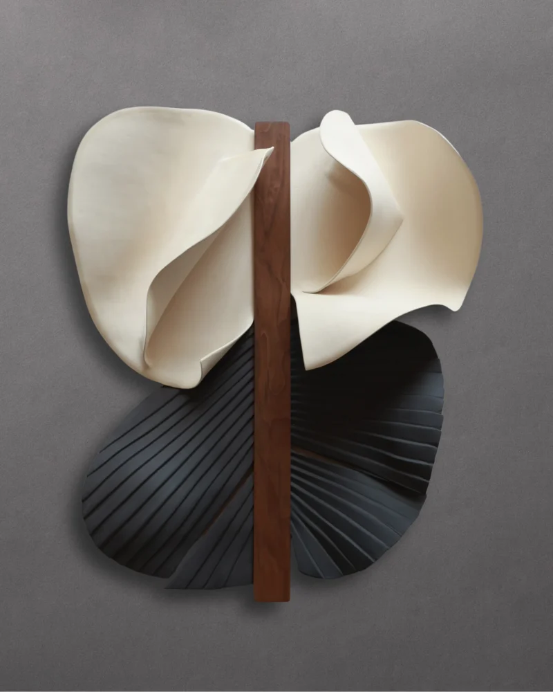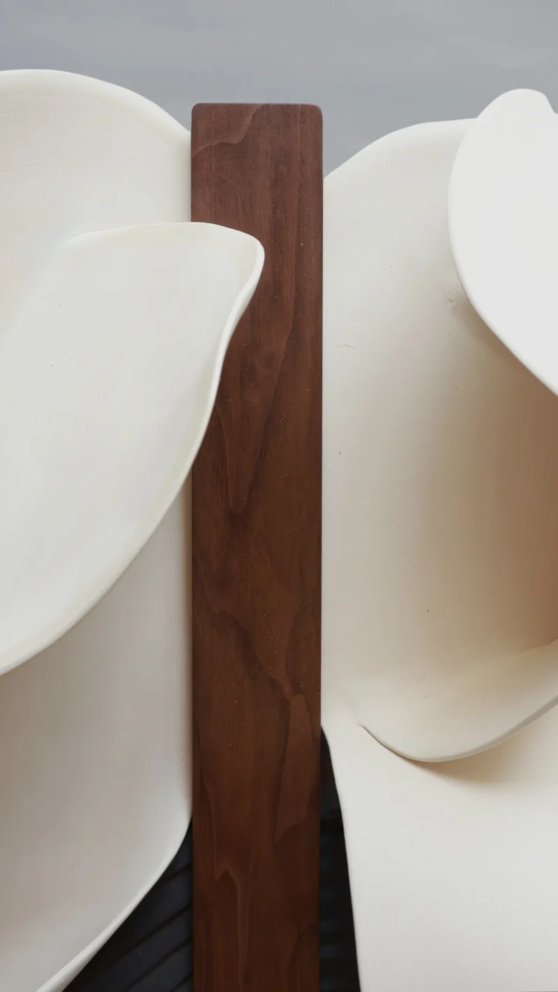 Abundance is a collection of handcrafted ceramic and wood wall sculptures, by Studio Ēeme, originally commissioned for a private residence in France. Each piece embodies a dynamic sense of movement, exploring the interplay of light and shadow through the combination of wood and ceramics.