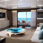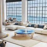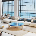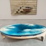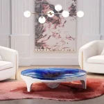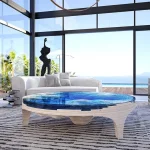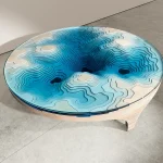 Duffy casts an eye downwards – with a captivating modern coffee table design. A deep, turquoise-blue Abyss appears to float effortlessly above free space.
