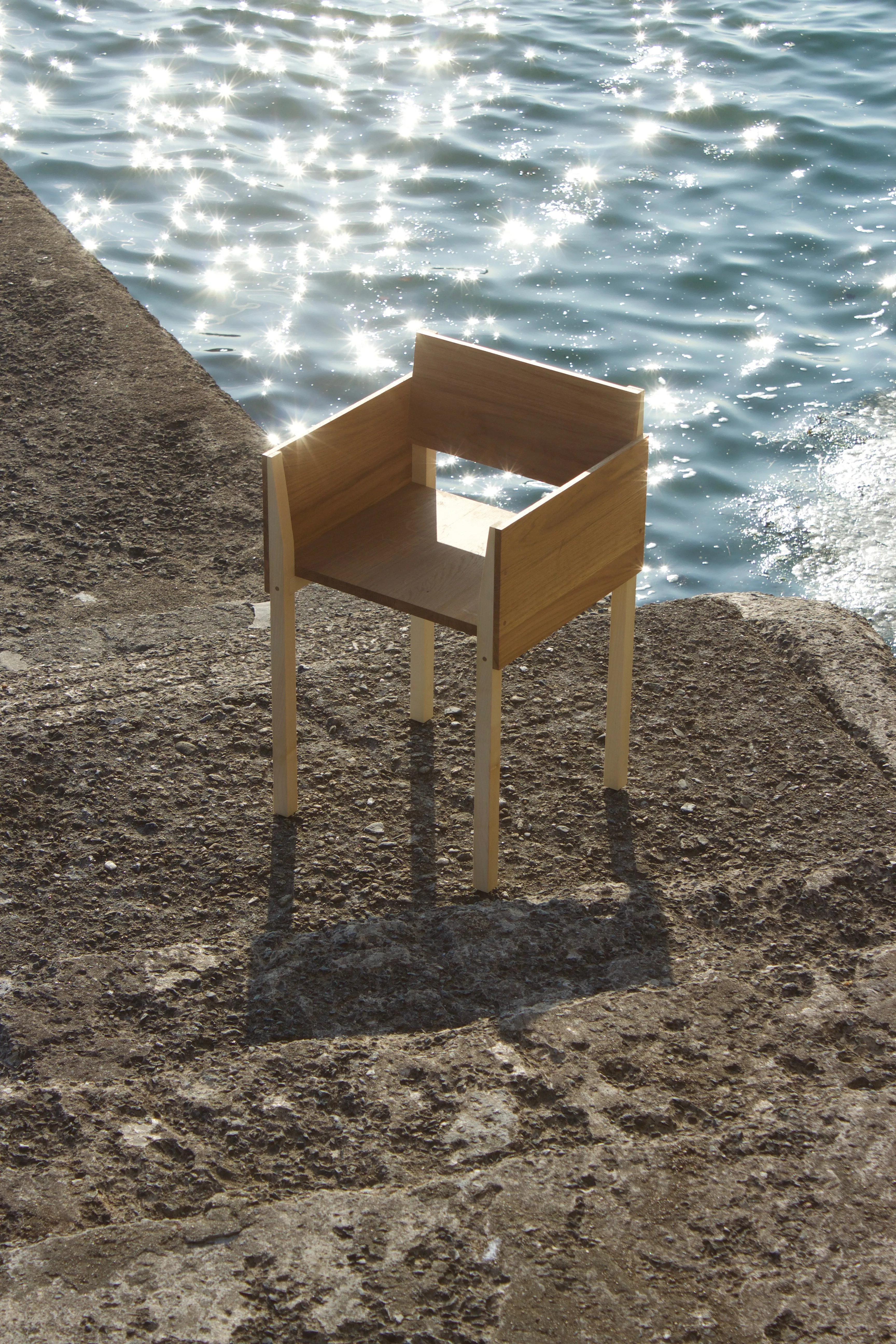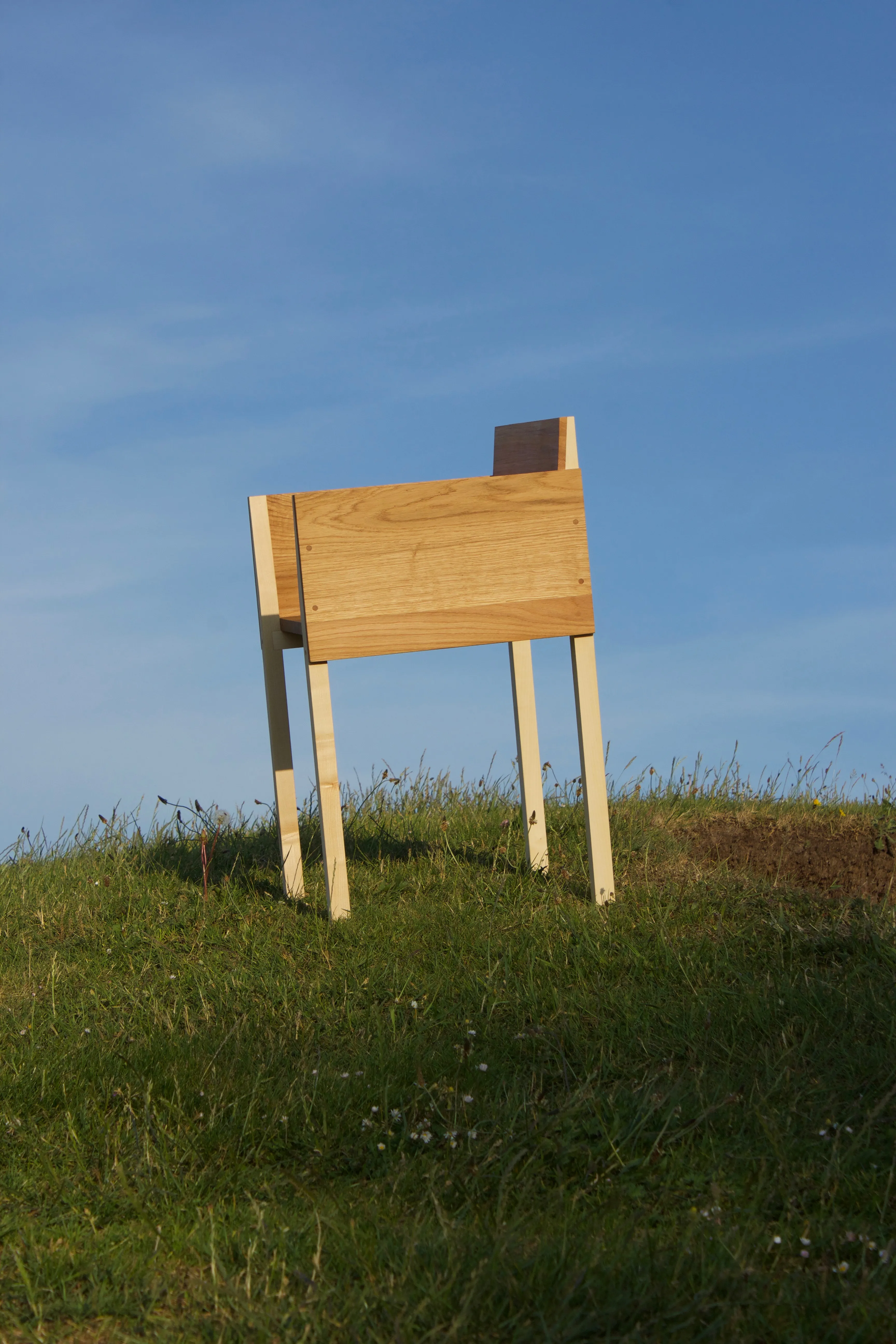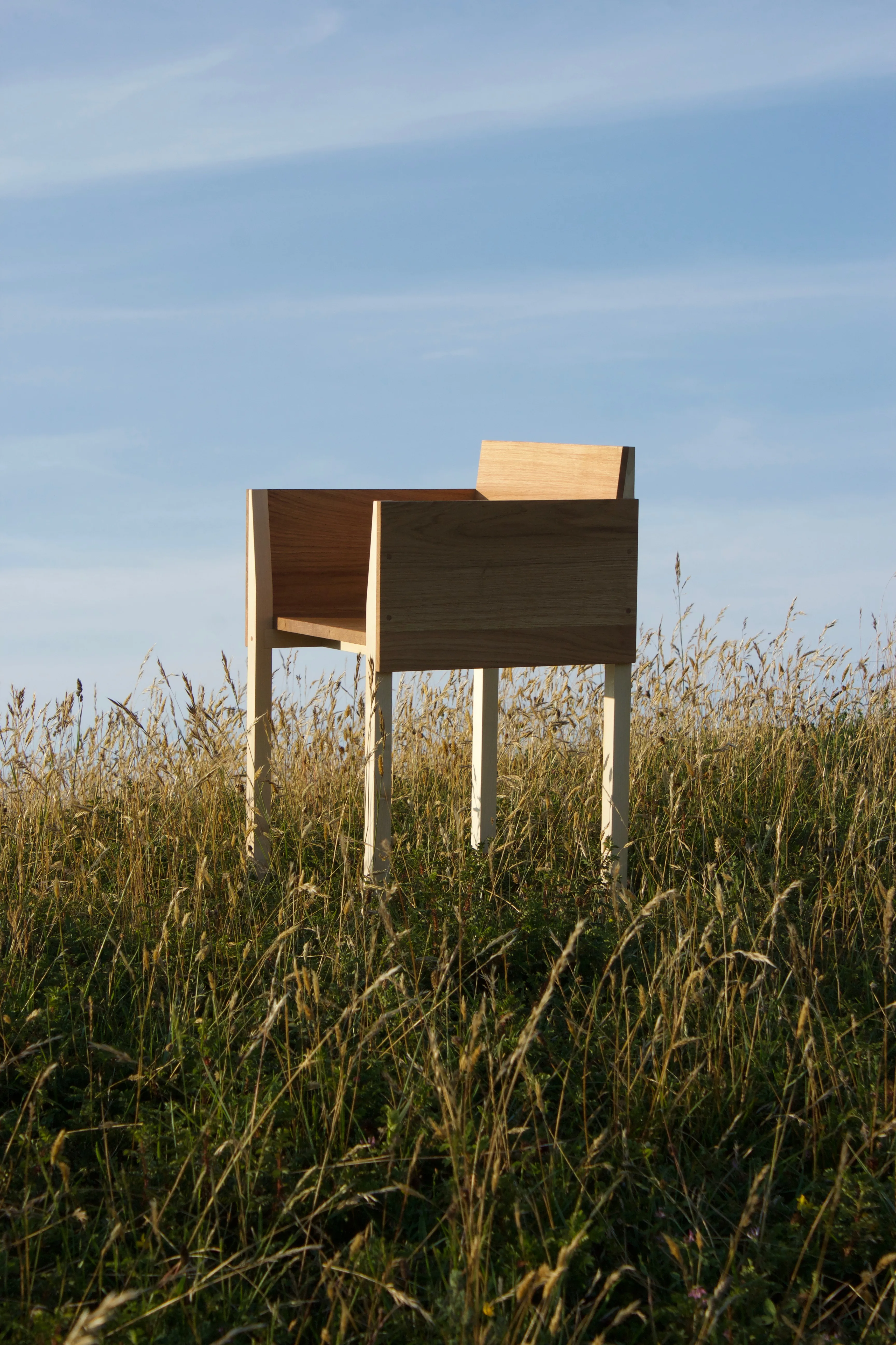 The object allows a dialogue between two wood species: oak for its outer shell, and sycamore maple for its structure.