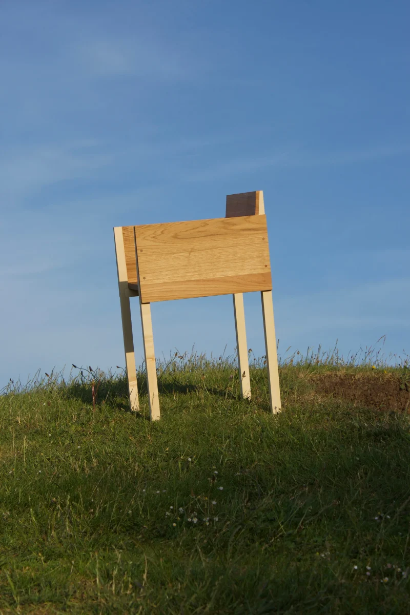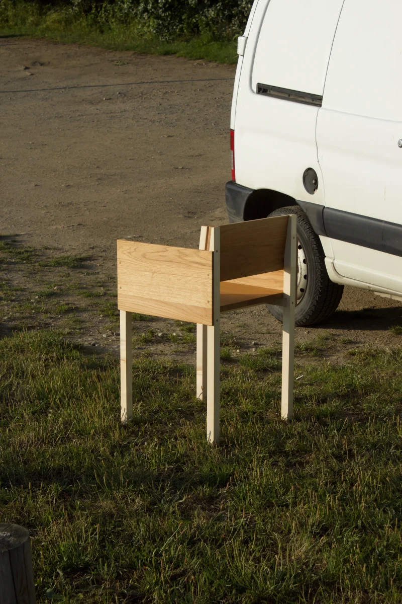 Vital Lainé, born in 1997 in Rennes, is an artist and designer who works intimately with wood. In 2022, he established his studio near the Rance River, close to a sawmill where the material itself often seems to call to him. His process is a dialogue between his creative vision and the living essence of wood, which guides his designs as much as he shapes it. Vital has a unique perspective on his medium, emphasizing its natural beauty and so-called imperfections. He sees every phase of creation as integral to the final piece, from sketches and models to hands-on shaping. His work shifts between drawing, flat designs, and volumes, allowing him to reinterpret objects from multiple perspectives. Each piece represents the beginning of a new exploration. Even when two creations appear similar, they are distinct versions of an idea. Vital continuously reimagines everyday objects—chairs, tables, and lamps—seeking new forms that honor simplicity, materiality, and function. “I don’t add anything unnecessary; I let the material speak. Details like a vein or knot in the wood inspire me and remind me of the tree it came from.” His work blends utility and artistry, existing between daily use, sculpture, and a sacred respect for nature. Drawing inspiration from artists such as Constantin Brancusi and Max Lamb, Vital creates objects that invite reflection and interaction. Beyond his studio, Vital photographs his pieces in various settings—landscapes, village squares, or near the sawmill—offering new perspectives on his work. For him, the process of making, the time spent reflecting, and the interaction with space are inseparable from the object itself. In his creations, Vital Lainé invites us to rediscover the connection between material, design, and the world around us.