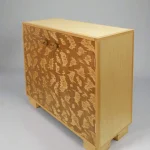Handcrafted by Josh. The doors are carved Walnut Veneered Birch Plywood with Chrome hinges. The body is constructed from Ash Veneer with a solid Ash frame to insure a long life. Handcarved Walnut handles.