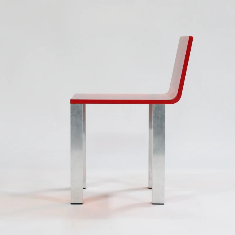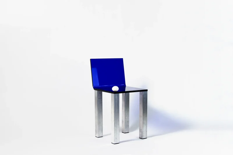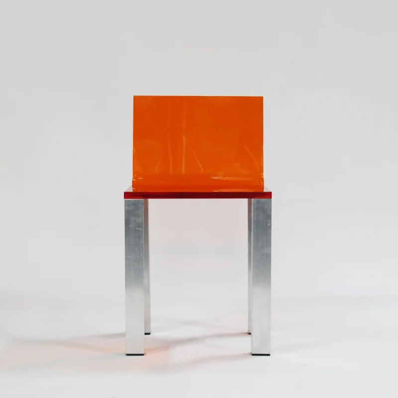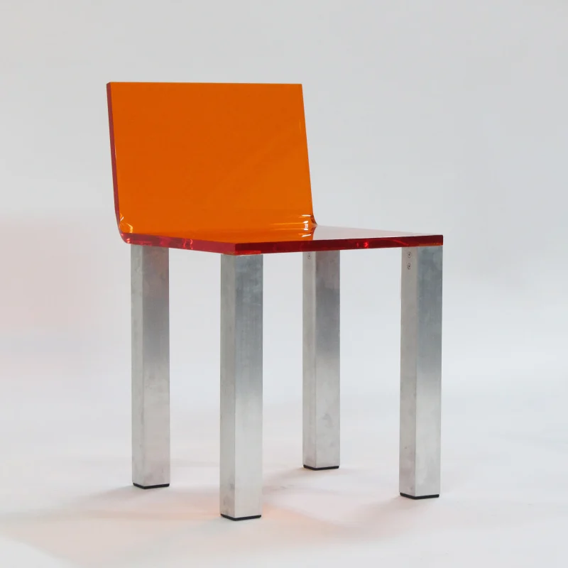 The ACRILAR Chair is a piece of acrylic sheet folded on aluminum profile feet.