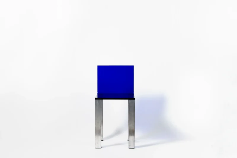 The ACRILAR Chair, a standout piece from this series, showcases a folded acrylic sheet elegantly perched on square tubular aluminum feet. Adding to its versatility, the chair’s color can be customized as per preference.