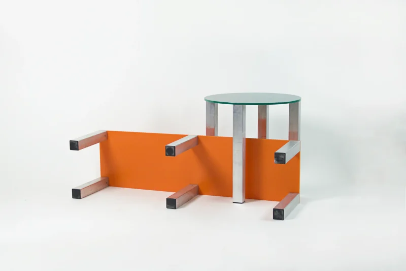 Introducing the ACRILAR Side Table from the 2021 ACRILAR series. This meticulously crafted table combines both opaque and transparent acrylic sheets with a minimum thickness of 15 mm, complemented by a natural aluminum frame featuring square tubular profiles measuring 50 x 50 mm. The design offers flexibility with surfaces that can be either flat or folded, supported by acrylic consoles securely fastened with screws to aluminum arms, capped with square black plastic tips.
