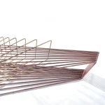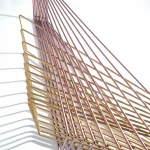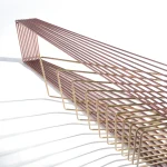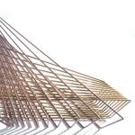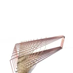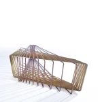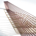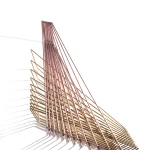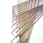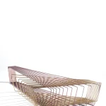 Made of brass and copper, two distinct materials, two different essences, in dialogue with each other in a geometric embrace that unfolds in space.