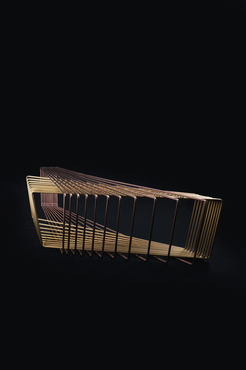 The AFFINITY coffee table by ORFEO STUDIO celebrates human relationships, a silent poem written in the language of metal. The lines repeat like notes in an invisible score.