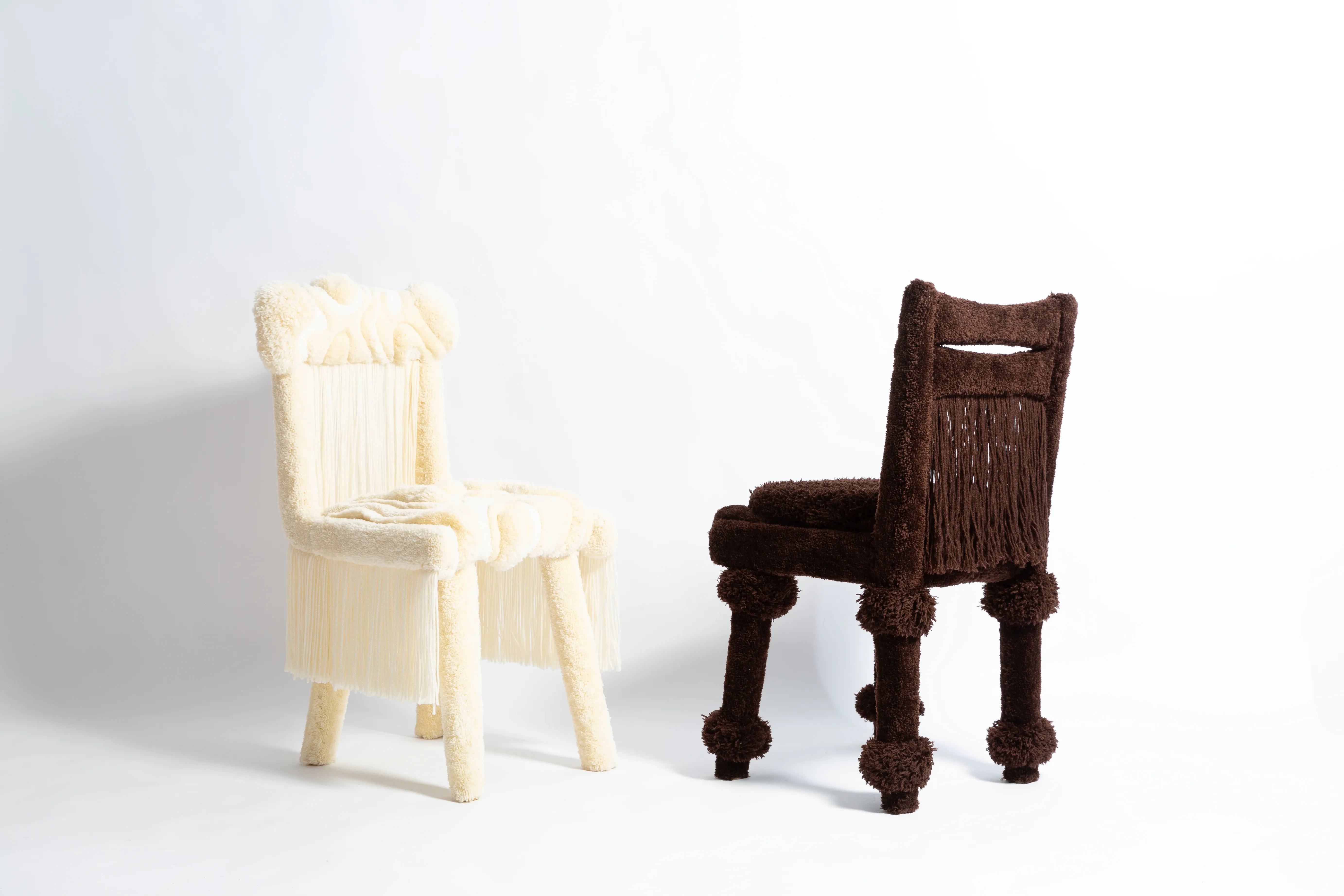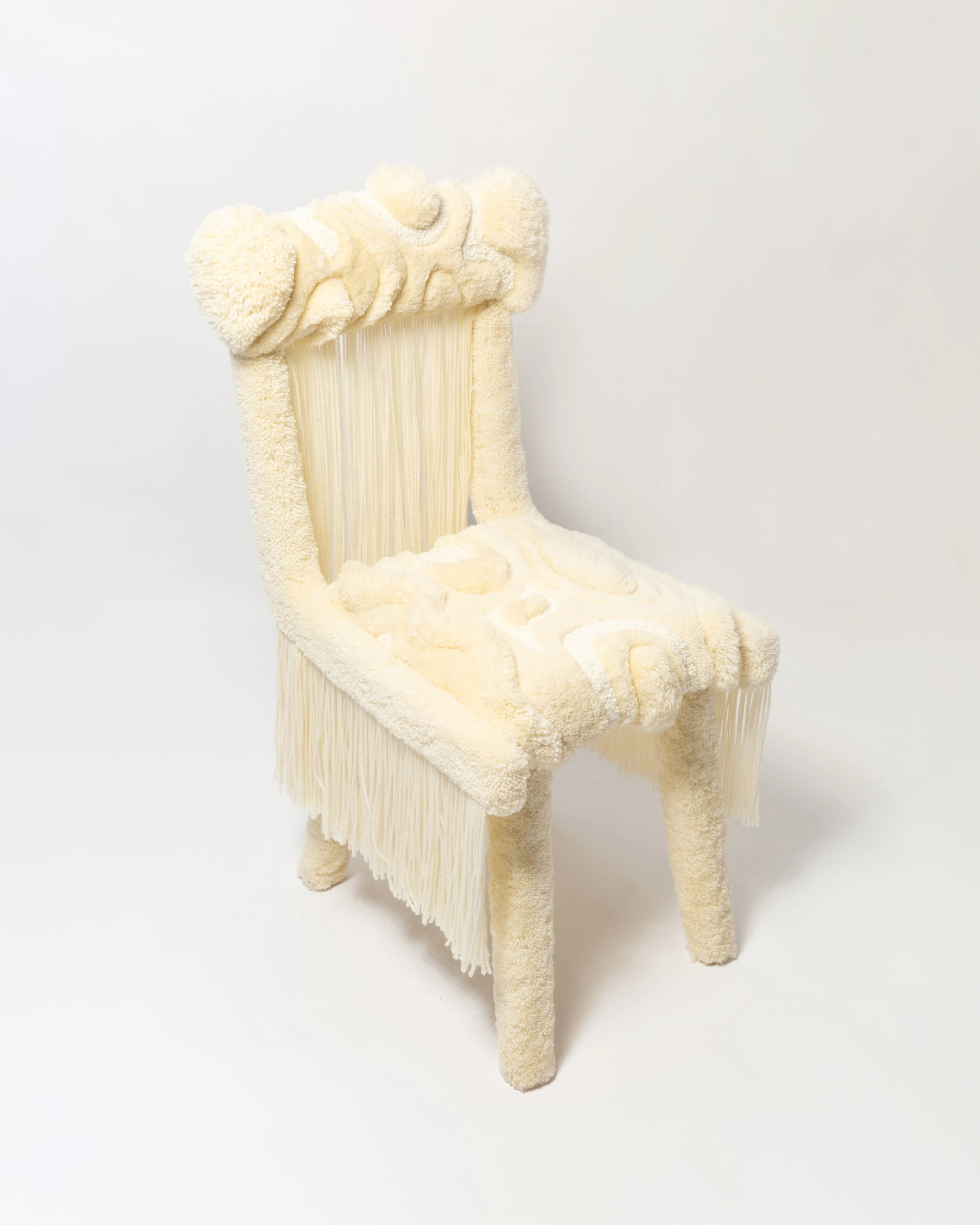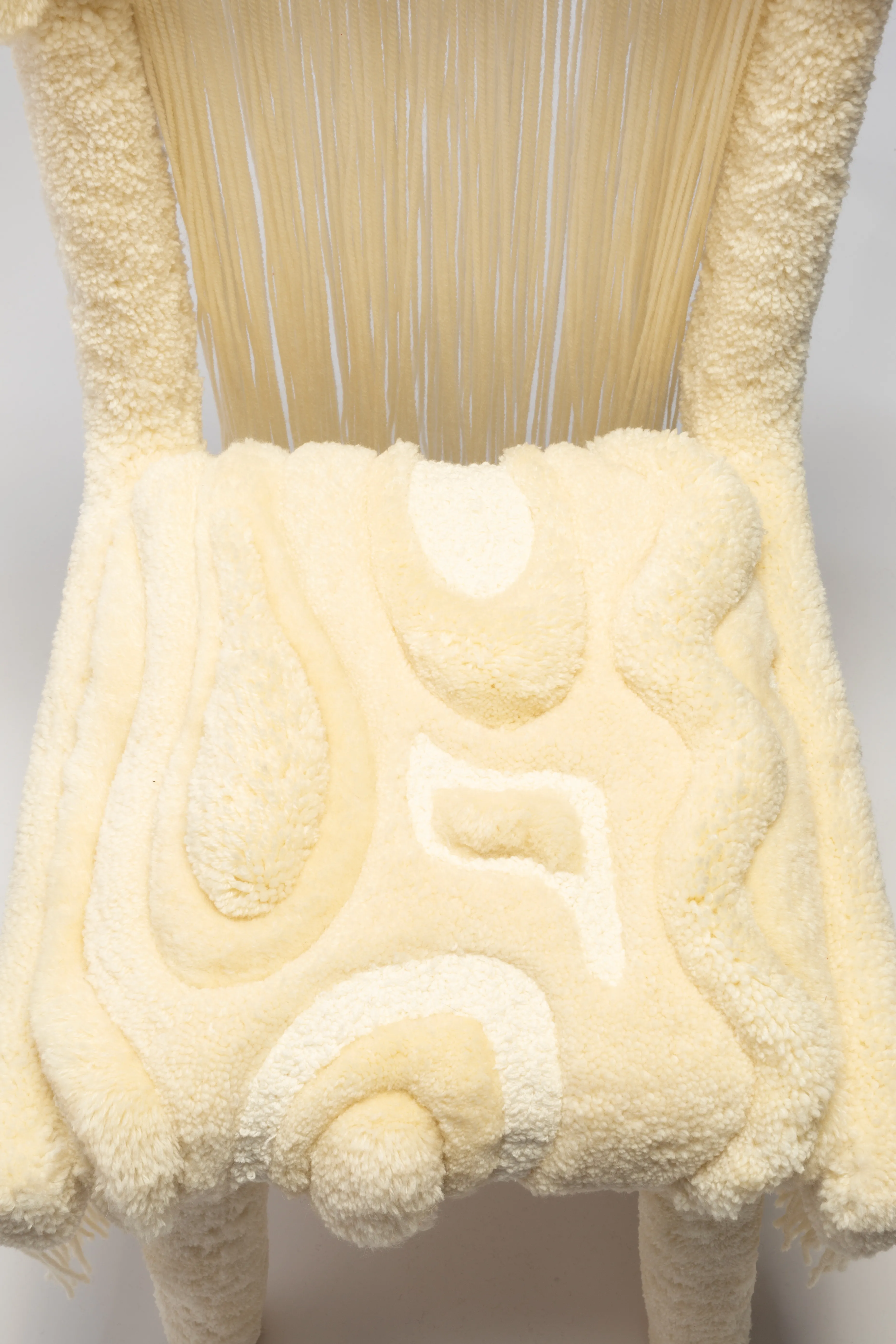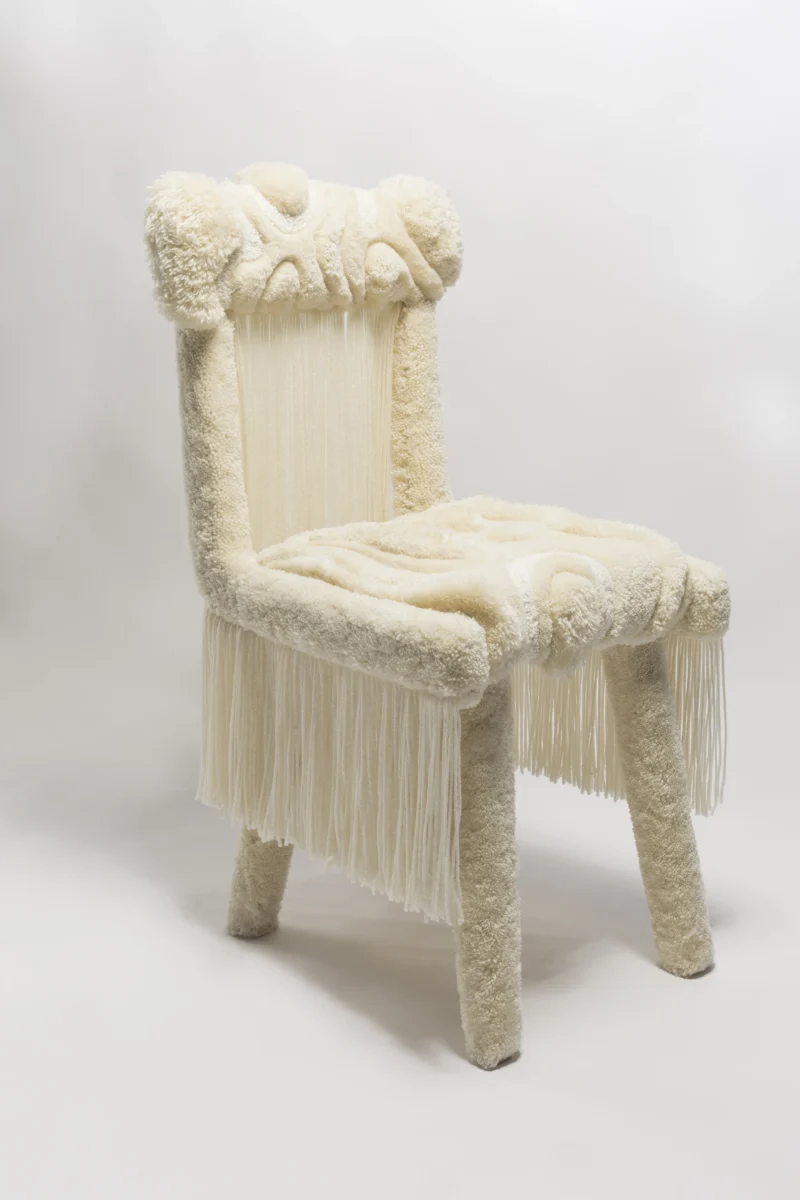 Afghan Hound accent chair bold modern chair cheeky design collectible accent chair Collectible Furniture contemporary accent chair cream wool armchair cream wool chair Designer chair designer seating Eclectic Design Functional art handcrafted designer chair handmade chair luxury handcrafted seating Maximalism Maximalist modern lounge chair modern lounge seating one-of-a-kind furniture Playful design Retro Sculptural Seating Vintage Modern wool fabric chair