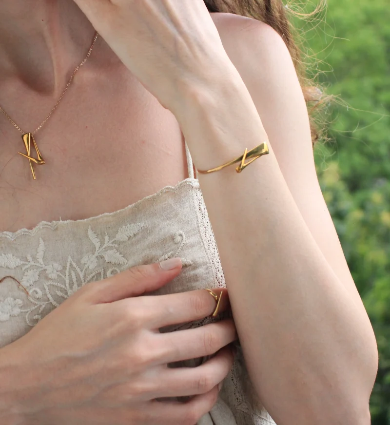 The Afra – Bracelet, by “Studio Delta P” from the “Woodskin” Collection, inspired by the fluid, peeling layers of tree trunks shaped by time and nature.