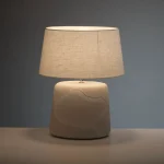 This beautifully crafted ceramic table lamp combines organic textures with a refined, modern aesthetic. The gently rounded base features a unique, hand-carved pattern reminiscent of natural landscapes, adding depth and character to the piece. Made from high-quality stoneware with a subtle, textured finish, it pairs perfectly with a soft linen lampshade, providing a warm and comfortable light. Ideal for interior designers and collectors seeking a statement lighting piece that blends contemporary and artisanal influences.