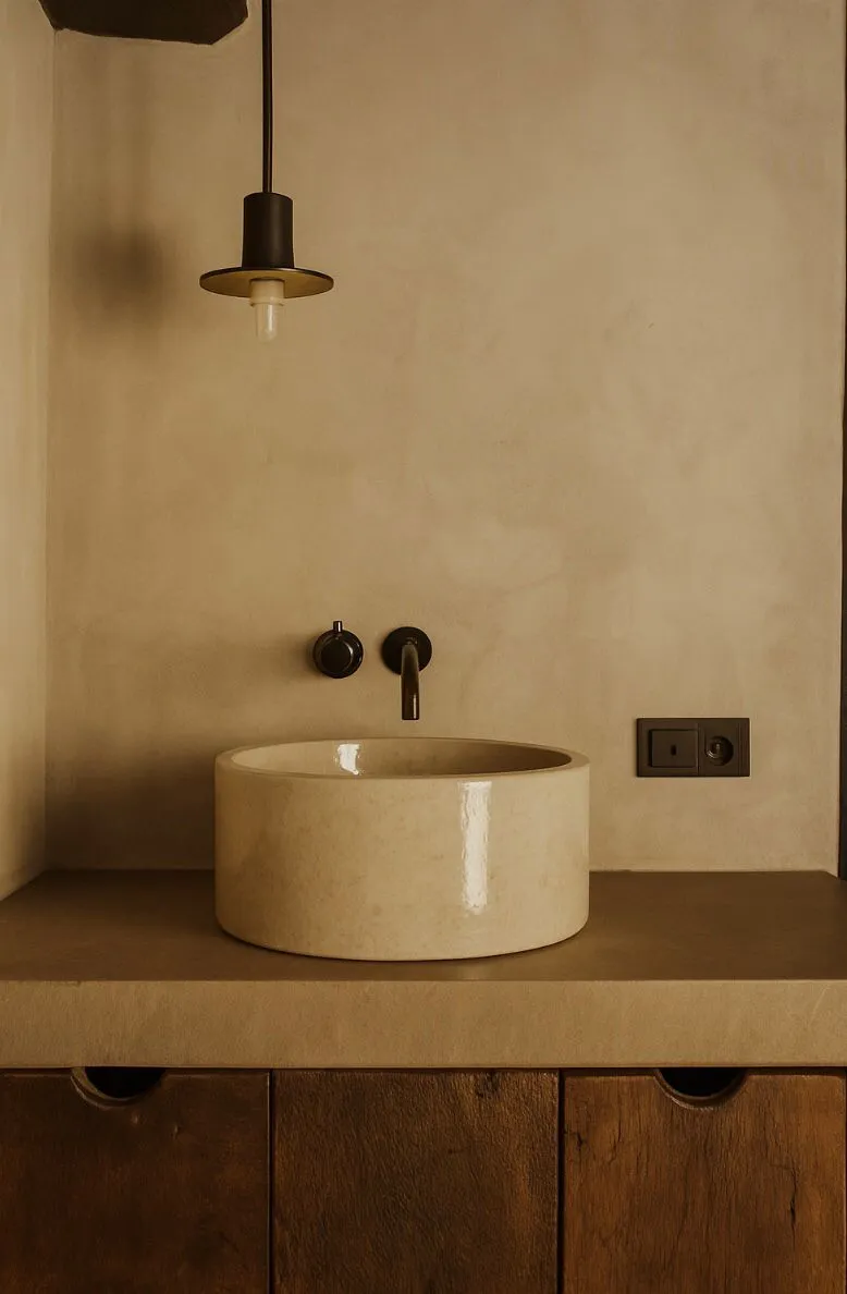 Crafted entirely by hand, this round cement sink brings a soft, sculptural elegance to any interior. Made using locally sourced aggregates and natural pigments, it features a smooth matte finish with gentle tonal nuances that highlight its artisanal origin.