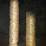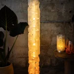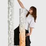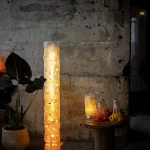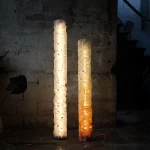 The body is 3D-printed using a translucent polymer and finished in either Gradient Pitch — with a subtle shift from deep amber to milky white — or in a fully Translucent version. Inside, a 120 cm or 150 cm T8 LED tube is seamlessly integrated, offering efficient illumination while emphasizing the verticality of the form. Despite its scale, the lamp is freestanding, designed to stand on the floor without additional support. The piece functions both as a light and a spatial element — somewhere between furniture and natural architecture — creating a warm, ambient presence in any interior.