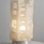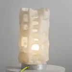 The Alherd Table Lamp offers a quiet sculptural presence—its porous, organic texture diffuses light softly while remaining visually subtle when turned off. Its translucent body integrates seamlessly into restrained environments, making it ideal for calm, uncluttered spaces.