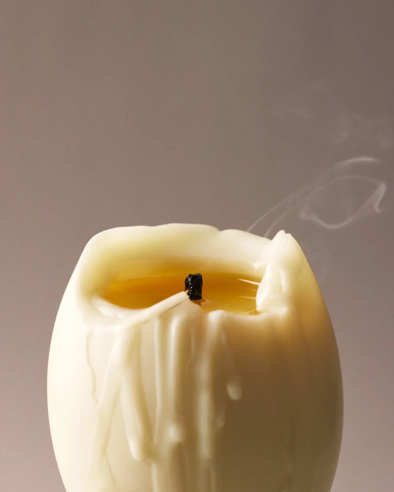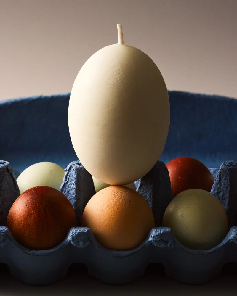 ALIGHT CANDLE is inspired by the abundance of eggs from our backyard chicken coop in the Catskills. Its curves have been carefully designed to nest perfectly in the Perch Holder, elevating this familiar shape into an object worthy of display. Variations in texture are unique to each candle and a celebration of their hand-made quality. Made with soy and local beeswax.