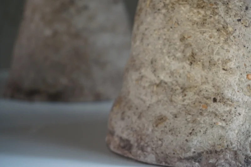 Materials: dehydrated food leftovers, salt, flour, gypsum and bone glue.