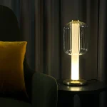 With an arresting sculptural yet symmetrical accent, Alma Table Light is an attempt to reimagine the classics for a contemporary fixture to enhance the extraordinary modern-day spaces. Hand crafted using brass, perspex TIR lens, clear fluted glass and integrated LED source, makes it a well- balanced and adaptable luminaire. With the TIR lens acting as an enlightened rod, Alma offers a glare-free warm tone creating a rather calmer and soothing surrounding. Intrigued by internal reflection of light through a perspex rod and inspired by the soft glare-free glow of a traditional lantern, ALMA in Fully Matted Optics is equally as captivating, owing to the striking illuminating rod making it wonderfully adaptable and offering elite Art Deco decorative functionality.