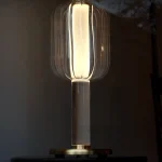 Born from a pivotal phase in the designer’s – Riya’s life. ALMA Table Lamp embodies humility, authenticity, and timeless design principles. With exquisite brass components, fluted glass shade and a perspex TIR (total internal reflection) lens as the centre support, the fixture explores the illusive and reflective properties of the lens and diffuses light to create a soulful ambiance. ALMA’s harmonious balance of form and function, along with its warm, soothing tones, creates a tranquil environment.