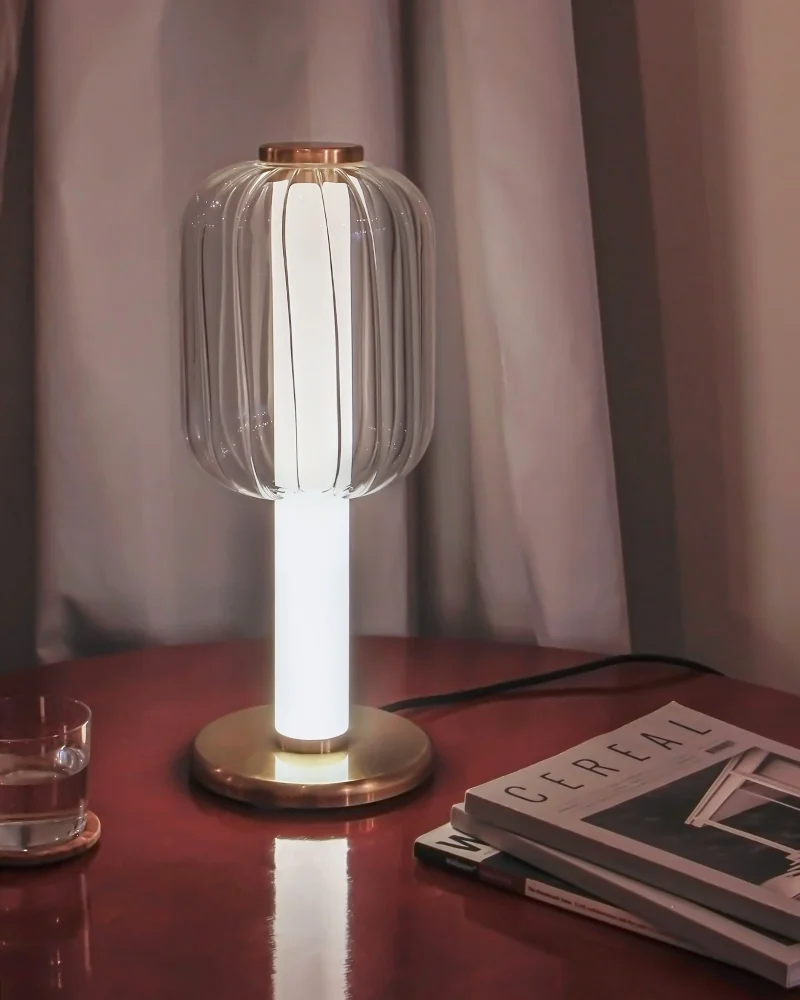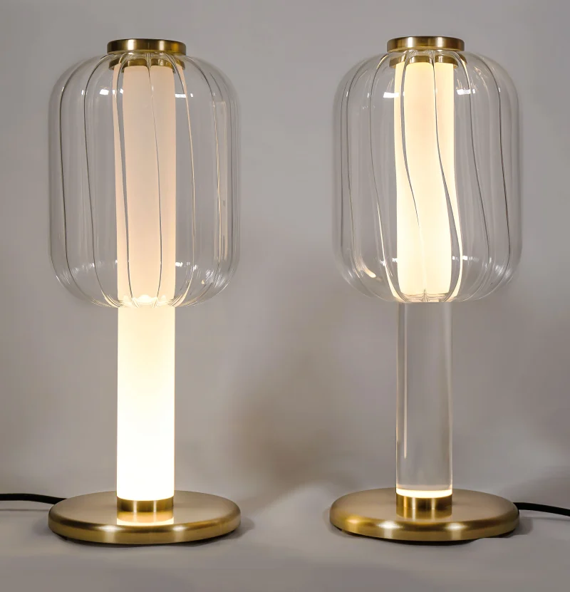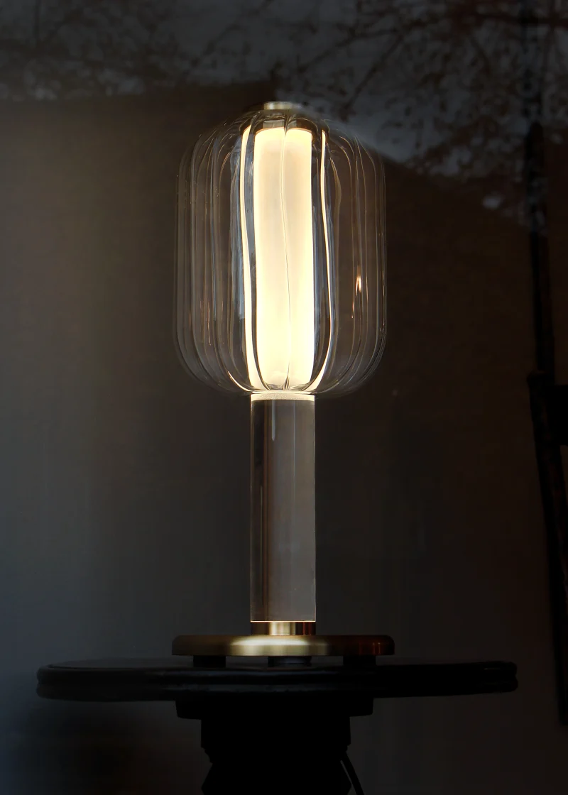 Born from a pivotal phase in the designer’s – Riya’s life. ALMA Table Lamp embodies humility, authenticity, and timeless design principles. With exquisite brass components, fluted glass shade and a perspex TIR (total internal reflection) lens as the centre support, the fixture explores the illusive and reflective properties of the lens and diffuses light to create a soulful ambiance. ALMA’s harmonious balance of form and function, along with its warm, soothing tones, creates a tranquil environment.