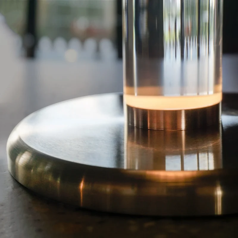 With an arresting sculptural yet symmetrical accent, Alma Table Light is an attempt to reimagine the classics for a contemporary fixture to enhance the extraordinary modern-day spaces. Hand crafted using brass, perspex TIR lens, clear fluted glass and integrated LED source, makes it a well- balanced and adaptable luminaire. With the TIR lens acting as an enlightened rod, Alma offers a glare-free warm tone creating a rather calmer and soothing surrounding. Intrigued by internal reflection of light through a perspex rod and inspired by the soft glare-free glow of a traditional lantern, ALMA in Fully Matted Optics is equally as captivating, owing to the striking illuminating rod making it wonderfully adaptable and offering elite Art Deco decorative functionality.