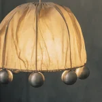 This lamp comes with a coordinating brass metal ceiling rose, linen cable and steel suspension, which must be installed by a professional electrician. The bulb socket is compatible with an E27 bulb.