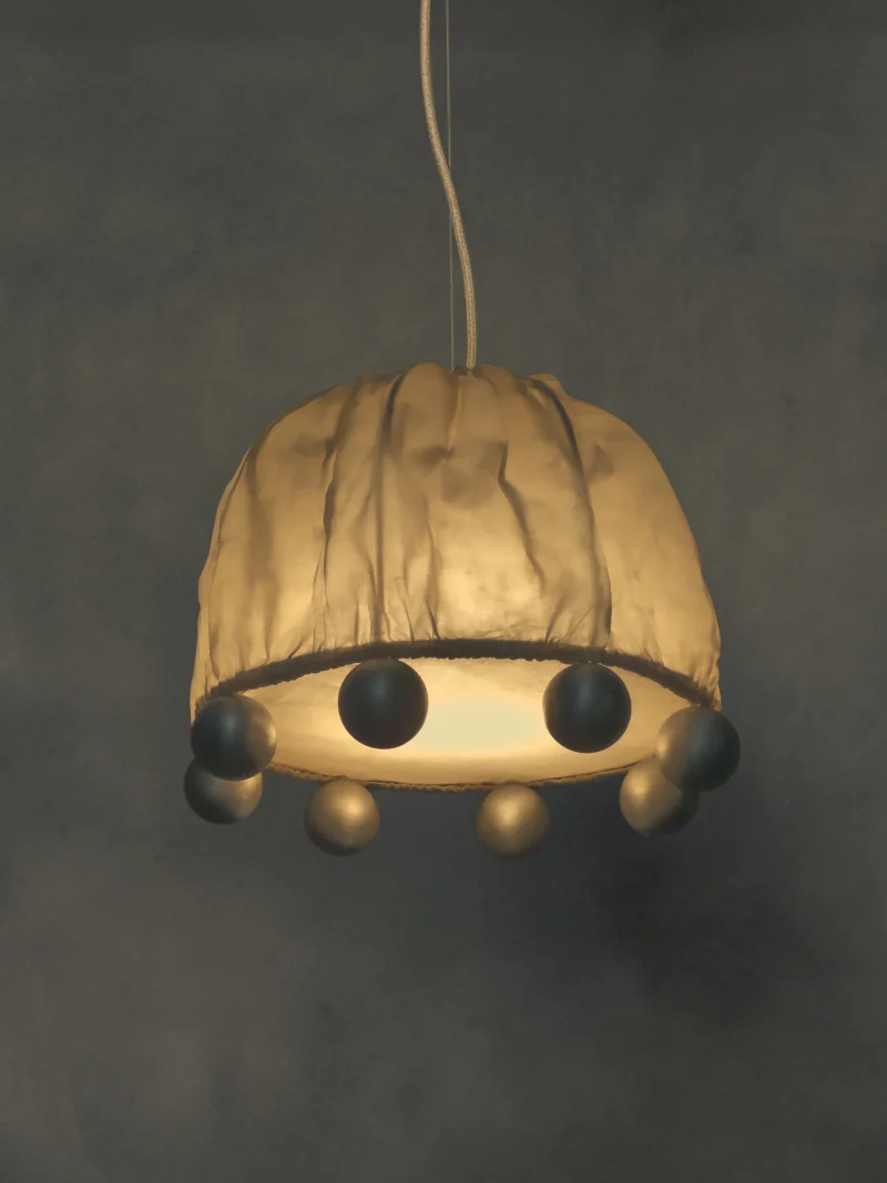 Handcrafted by the alchemy of sand-cast metal and beeswax-coated linen, the Alter pendant lamp by Studio Kaytar symbolizes the unity of matter, spirit, and energy. These sculptural lightworks take their form from alchemic symbols. Like alchemy, which transforms matter and spirit, Kaytar aims to change materials and imbue them with new life.