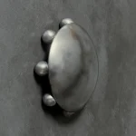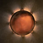 Sand cast by hand and alchemy to represent the unity of matter, spirit and energy. These sculptural light works take their form from alchemic symbols. Like alchemy, which transforms matter and spirit, Kaytar’s process aims to change materials and imbue them with new life. This solid bronze work was sand-cast by hand and left raw to develop a natural patina, it possesses a living presence. The circle form in the Alter works represents completeness and unity, symbolising the constant transformation and evolution of matter and energy. The solid metal spheres reflect the idea that all elements and forces in the universe are part of a greater whole, embodying the eternal cycle of creation, destruction, and transformation.