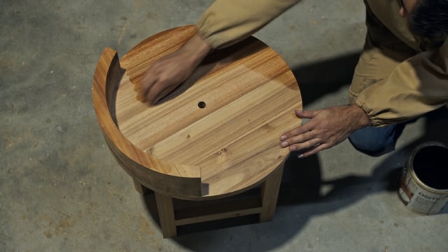 Made entirely of acacia and kambala wood, it is handcrafted by a Portuguese artisan.