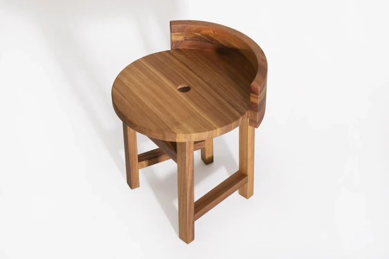Made entirely of acacia and kambala wood, it is handcrafted by a Portuguese artisan.