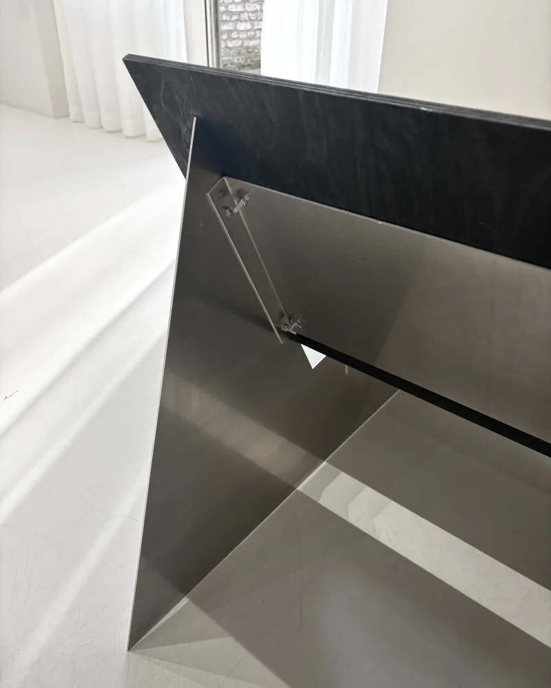 The German Design Studios' main focus is the material, its features, structure and meaning. The intentional use, curation and finishing of unique and long lasting materials creates objects that both reshape and highlight the initial features of the certain material. Every object aims to be a physical manifestation of a certain topic. Following interdisciplinary perspectives, a generally straightforward design language and precise implementation of details, the work of case studios shapes objects with a unique and distinctive feeling. Based on a variety of projects and designs, ranging from kitchens and vases to benches and sidetables, case studios specialised in the processing of a signature concrete, with extra strong and delicate edges, to create unique shapes and forms. With each object, the design studio manifests a case study of a new material or concept, gradually adding stainless steel, glas, wood and natural stone to their expertise.