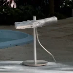 The Aluminum Veneer Lamp by Bureau.parso celebrates the transformative journey of simple, overlooked materials into valuable and meaningful objects through a blend of creative vision and technical craftsmanship. Beginning with scrap wood, we uncover its hidden beauty by enhancing its unique grain and texture through meticulous surface treatments. This organic richness is then transmuted into aluminum—a 100% recycled industrial material—becoming a vessel that preserves and amplifies the wood’s natural character.