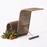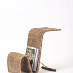 The waves of light and heat from the sun influenced us in the design of the Alvorada table. It is made of hand-braided wicker, bringing a feeling of warmth and contrasting with the shine of the polished stainless steel. For its stability, a solid wood stick was used. Its fluidity and flexibility allow it to be used as a side table and magazine rack, adapting to different situations.
