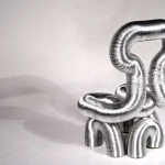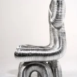 Made of aluminum ventilation tubes, the Amadeus Chair is a unique, handcrafted piece of art furniture. The major goal of this work is to investigate the material’s suppleness and to identify the fashion language that underlies its form and composition. The chair’s overall form is made by hand from aluminum ventilation tubes, which are then filled with voluminous firm foam to give it strength and lightness.