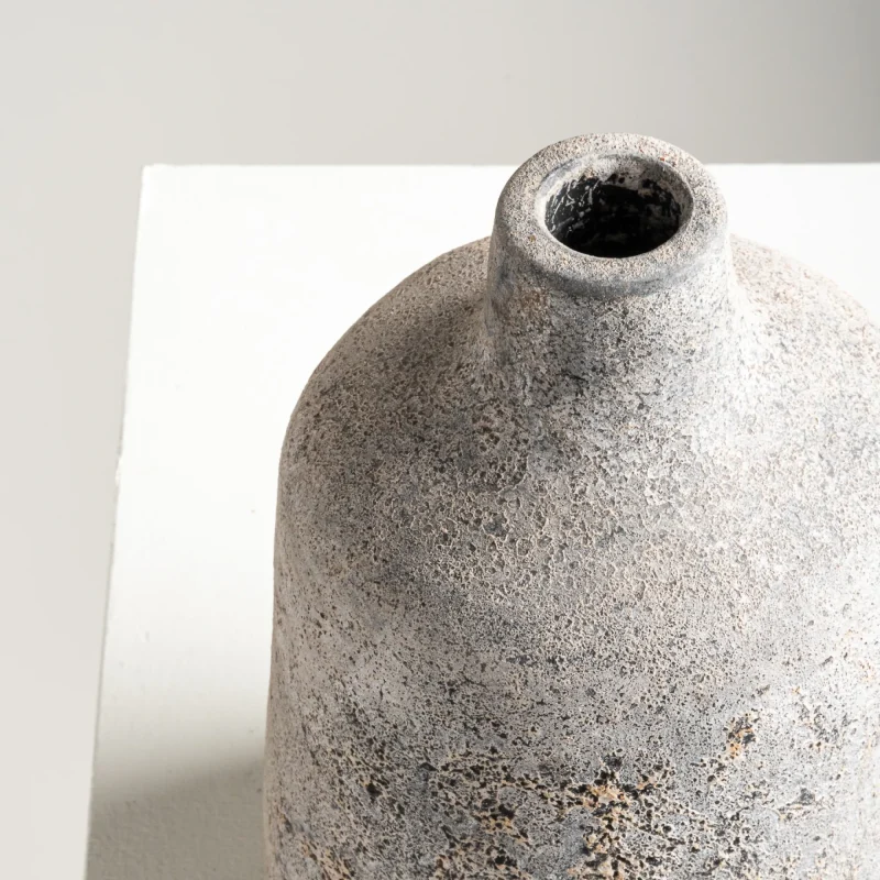 The Amber Vase by Rumma, with it’s simple yet distinctive curve, adds subtle elegance to vignettes. Handcrafted from terracotta clay, it features an soft yet brutalist finish, exuding rustic charm. The distinctive form, accentuated by one small handle, further defines its unique charm.