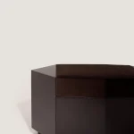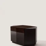 The Ame I Lacquer Ottoman is a sculptural pouf handcrafted in Portugal, featuring a dark chocolate high-gloss lacquered MDF base and a deep burgundy velvet seat. Its architectural silhouette balances solidity and softness, light and shadow, creating a refined spatial gesture. Each piece is a statement of tactile elegance and intentional craftsmanship.