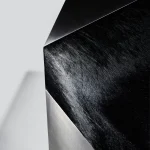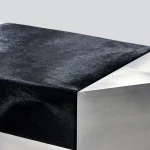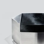 The Ame I Steel Ottoman is a bold architectural piece handcrafted in Portugal, featuring a brushed steel base and a deep black cowhide cushion. Its faceted silhouette captures and reflects light, emphasizing contrasts between hardness and softness, matte and shine. Each piece is a statement of tactile elegance and intentional craftsmanship.