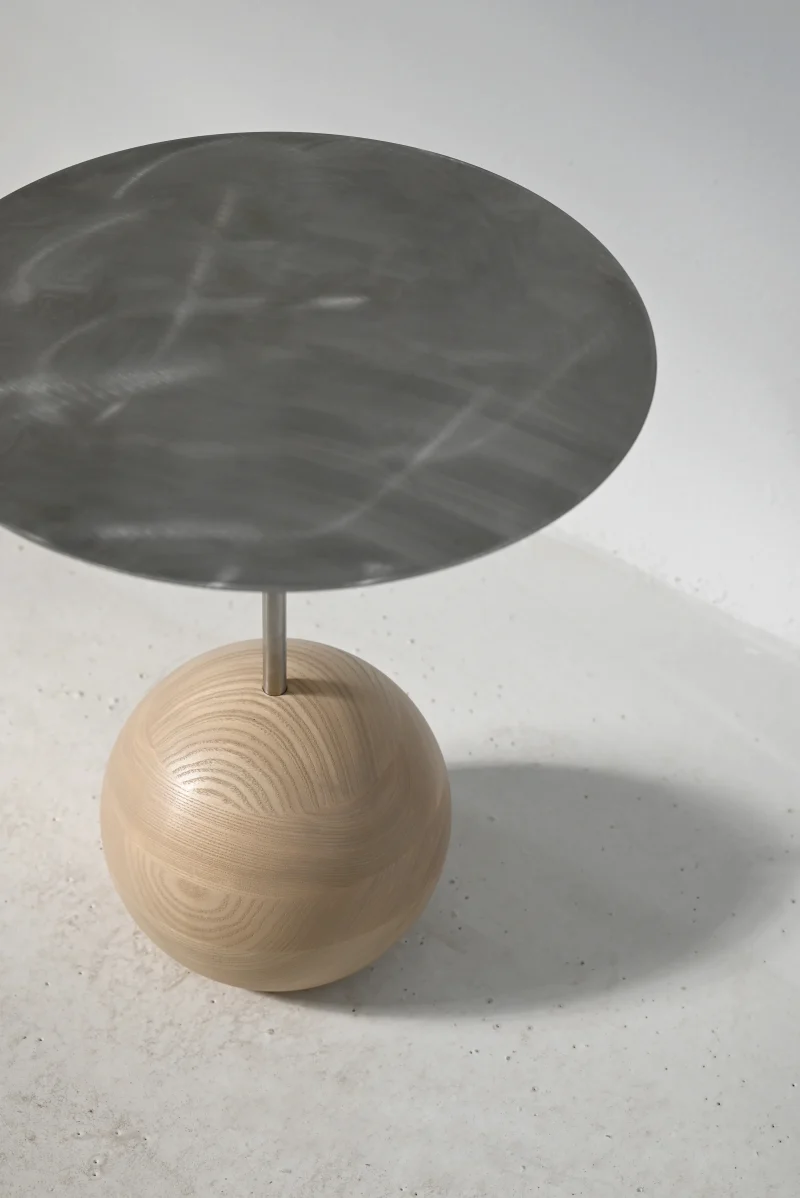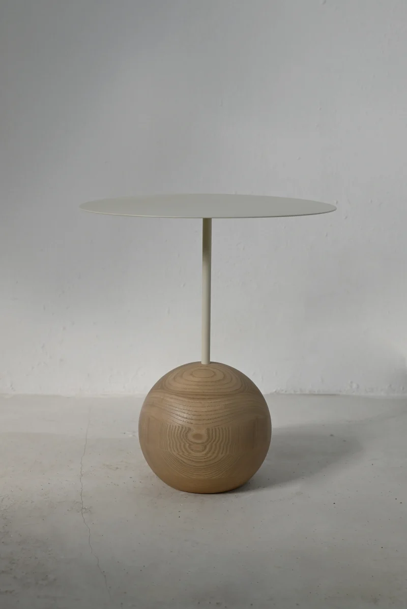 AN SU is a table made of high-quality steel and solid, hand-turned ash wood. Thanks to its small base, it is perfect for even the smallest spaces. It will successfully work as a bedside table, coffee table, or flower stand.