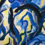 The work is part of the textile painting series entitled “Fragments of a forest” and depicts a battle between the imaginary creatures of Oana Tudose’s childhood forest.
