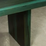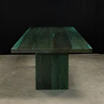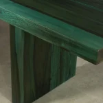 The Andre Table is shown here in natural Argentine Rosewood in green variant, Verdi, with two solid wood pedestals. This piece comes in any of our standard wood species and finishes, and in any size. Made to order, but some sizes may be in stock and ready for immediate delivery, inquire for details.