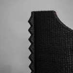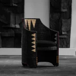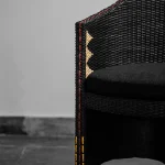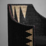 Handcrafted with naturally dyed cane and rattan edge binding on a wooden structure, featuring black cotton upholstery for a sleek, cohesive look.