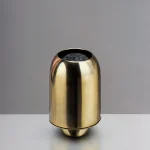 The Anicca Vanitas Scent Diffuser by Luca Gruber is made from sheet metal brass and includes a volcanic rock sphere. The brass pieces are hand-polished from the outside to a mirror-like finish, while the inside is patinated to create a dark brass texture. The brass acts as a container and elevates the volcanic rock. At the heart of this diffuser lies a volcanic rock sphere, carefully placed within the brass vessel. This natural element absorbs and gradually releases scented oils, filling the space with a subtle, lingering fragrance that evokes the passage of time. The interplay between the polished brass and the organic texture of the volcanic rock reflects the tension between permanence and impermanence – a central theme of the Anicca Vanitas Collection.