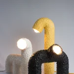 As children, we develop images and make-believe creatures in our own worlds.These, in turn, help us establish connections with others over time – giving us confidence through their presence. The Animal Lights series of lamps by Studio Bovti expresses this story through their forms. Consisting of the Dino, Monkey, and Worm lights, the connection to our own inner child exudes through their highly playful forms. The expression of light-heartedness and joy is supported by the atmospheric light, which provides warmth and calms the inner spirit. The playful, colorful structures produce a smile on viewers‘ faces.